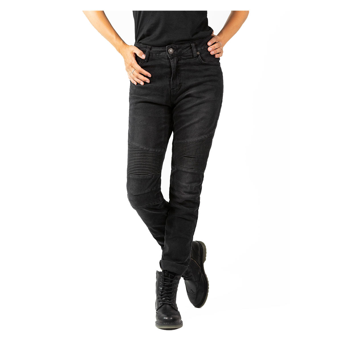 John Doe Betty Biker Ladies Riding Denim Jeans With XTM Fiber Used Black