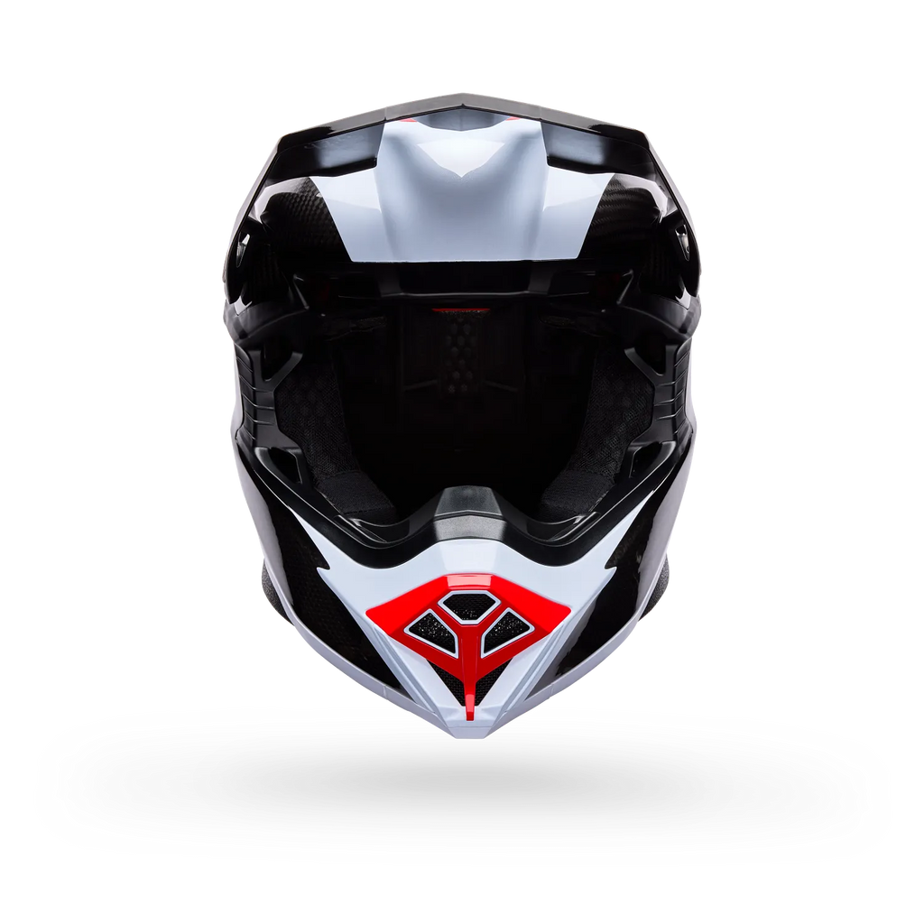 The Bell Moto-10 Spherical Fluid Black / Red helmet features a striking fluid graphic design in bold black and red. Its Segmented 3k Carbon Shell provides outstanding strength while keeping the weight to a minimum, a crucial advantage for competitive мотоcross. The innovative Spherical Technology™, powered by MIPS®, works to manage rotational impact forces by allowing the outer liner to move independently around the inner liner during angled impacts. The advanced Thermal Exchange Airflow System™ (TEAS) ensures superior ventilation, actively drawing in cool air and expelling hot air to keep you comfortable and focused during intense rides. The fully adjustable Flying Bridge Visor™ is designed with air intake vents, further improving airflow and reducing lift at high speeds. For added value, a padded and lined helmet bag is included. Certified to DOT, SNELL 2020, and ECE 22.06 standards, the Bell Moto-10 Spherical offers the highest level of protection. As a major UK retailer for Bell, Moto Central stocks an extensive range of Bell мотоcross helmets, and if you're looking for a specific colour or size of the Moto-10 Spherical Fluid, or any other Bell мотоcross helmet, our expert team can order it directly for you.