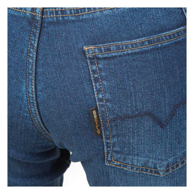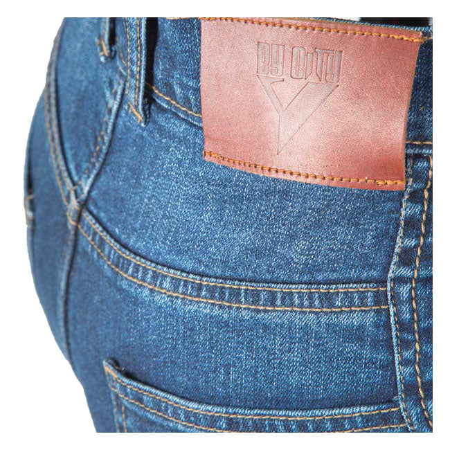 The ByCity Tejano jeans are designed for everyday comfort and reliable protection. They feature a straight fit and are made of elastic cotton fabric with a Kevlar liner inside, providing both flexibility and durability. There are pockets for hip protections (protections not included), and removable CE approved "Flexishock" knee protections are included for enhanced impact protection. The Tejano jeans themselves are also CE approved, CE prEN17092-3: 2018 Level AA, ensuring a high level of safety. ByCity has created jeans that are both comfortable and protective for daily riding. The Kevlar liner of these jeans provides excellent abrasion resistance. The elastic cotton fabric of these jeans ensures a comfortable fit. These jeans are a great choice for safe and comfortable riding.