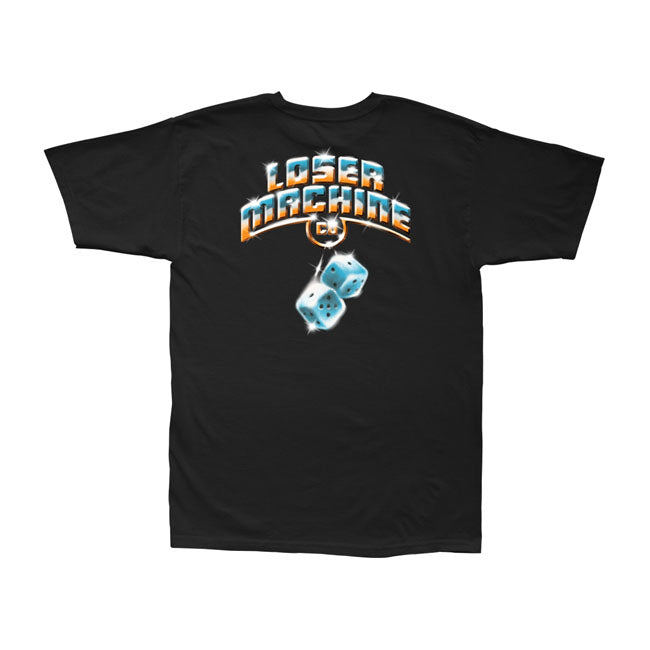 Introducing the Loser Machine Rear-View T-Shirt in Black, a must-have for any motorcycle enthusiast. This stylish t-shirt features a striking lucky dice print on the back, making it a unique addition to your wardrobe. Made from 100% cotton, it offers both comfort and durability, perfect for those long rides or casual outings. As a leading UK retailer for Loser Machine, Moto Central is proud to offer this fantastic product, and we can order any variations you desire in a wide range of colours and sizes.