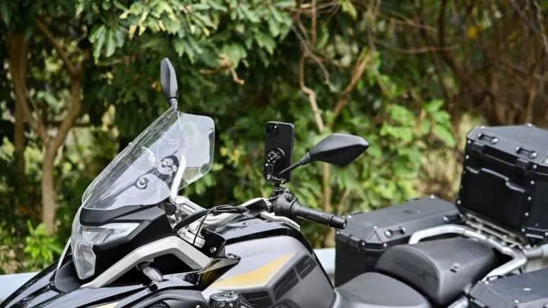The Outplorer QM04 features a magnetic quick mount design that ensures secure phone retention and easy attachment. This mount is engineered to meet the needs of riders who require a dependable solution for their devices. The built-in shock-absorbing design protects your phone from vibrations, making it suitable for both smooth roads and rugged terrains.
