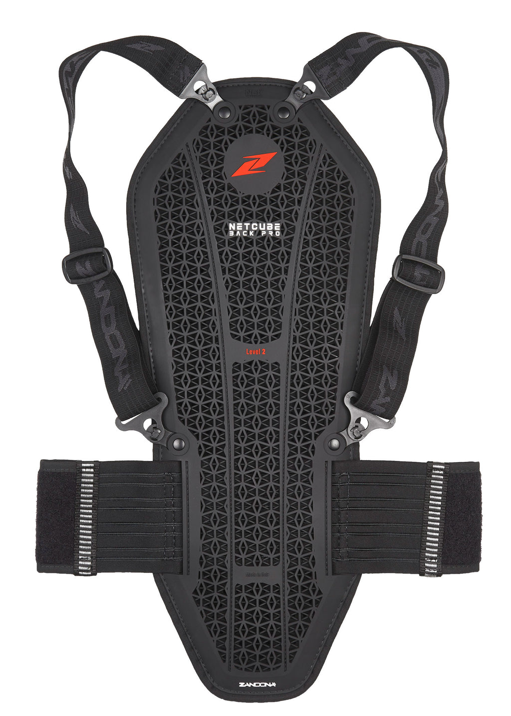 The Zandona NetCube Back Pro X7 Back Protector in black is a top-tier safety accessory designed for motorcyclists who prioritise protection and comfort. This back protector is certified to Level 2 (EN 1621-2), ensuring that it meets the highest safety standards. With its innovative Net3 Technology, this back protector features a unique structure made from special anti-shock nitrile rubber, which utilises patented 3D cross-linked technology. This combination results in exceptional impact absorption and energy distribution, providing maximum protection during rides.